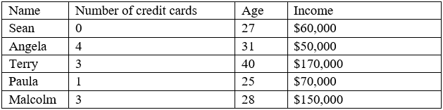 average of the three numerical variables: number of credit cards, age, and income. Which