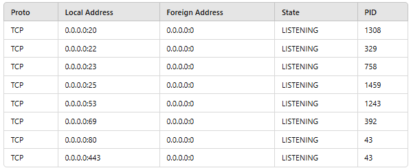 output from the netstat command: