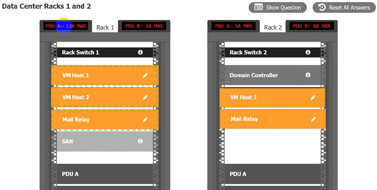 b. VM Hosts 1 and 2 and Mail Relay can be moved between racks.